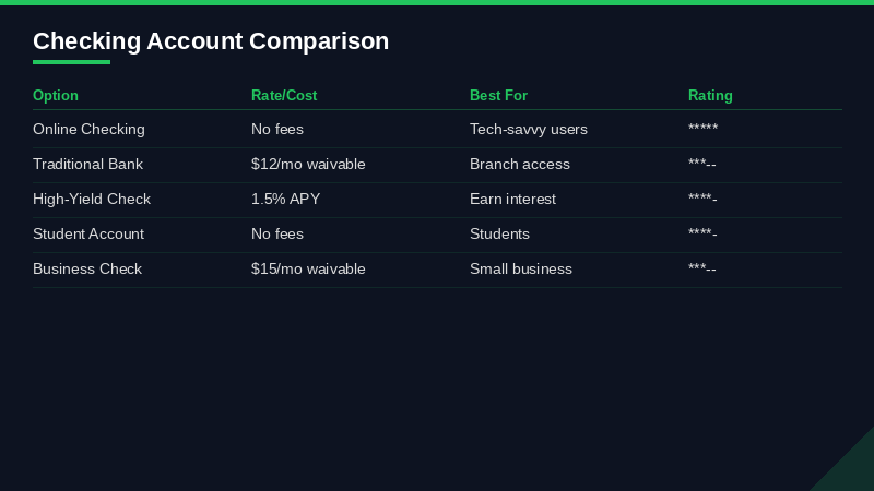 One thing worth knowing: checking accounts used to pay essentially 0% interest. That's changed. Online banks now commonly offer 0.50% to 3.30% APY on checking balances — some even higher — which means your checking account can actually work a little harder for you while still being fully liquid.