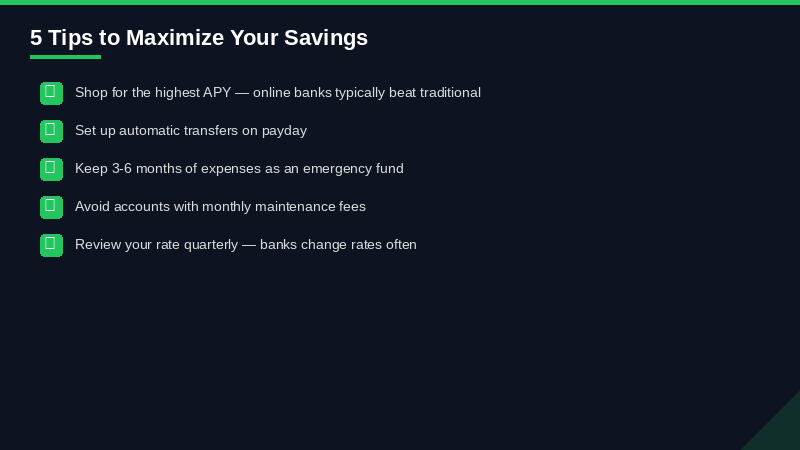 I'm not saying never take a higher rate from a smaller bank — Newtek Bank was legitimately offering 4.20% and is backed by real assets. But don't chase a 7% savings rate without understanding exactly why that's possible and whether the institution is sound. Check the bank's FDIC status, look up their call report data, read recent news about them.